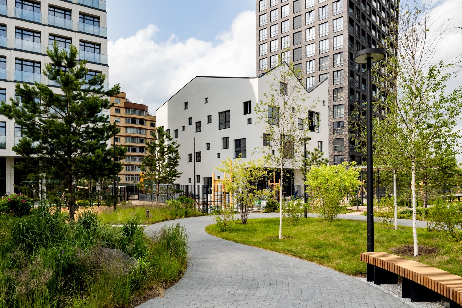 Помимо детской образовательной организации в шаговой доступности у жителей квартала есть возможность проводить теплые вечера в собственном дворе-парке площадью более 1 га.
